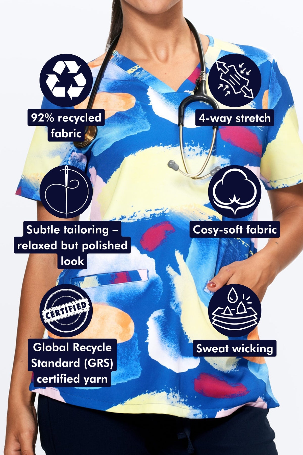 This soft, breathable & sweat-wicking scrub top is made for movement and comfort. You’ll love the: