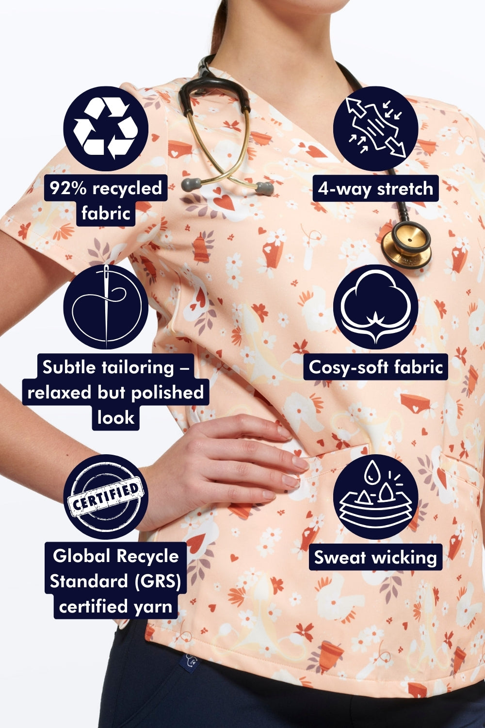 This soft, breathable & sweat-wicking scrub top is made for movement and comfort. You’ll love the: