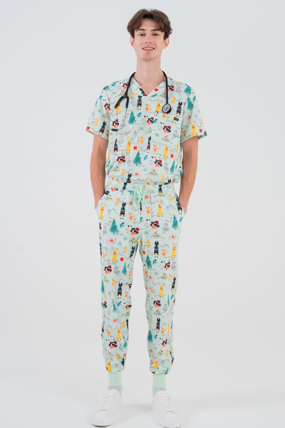You sent us festive pics of your favourite furballs, featherballs and goofballs. We used Christmas magic to turn them into these: Breathable, sweat-wicking scrub pants that work harder than a reindeer pulling a sleigh.