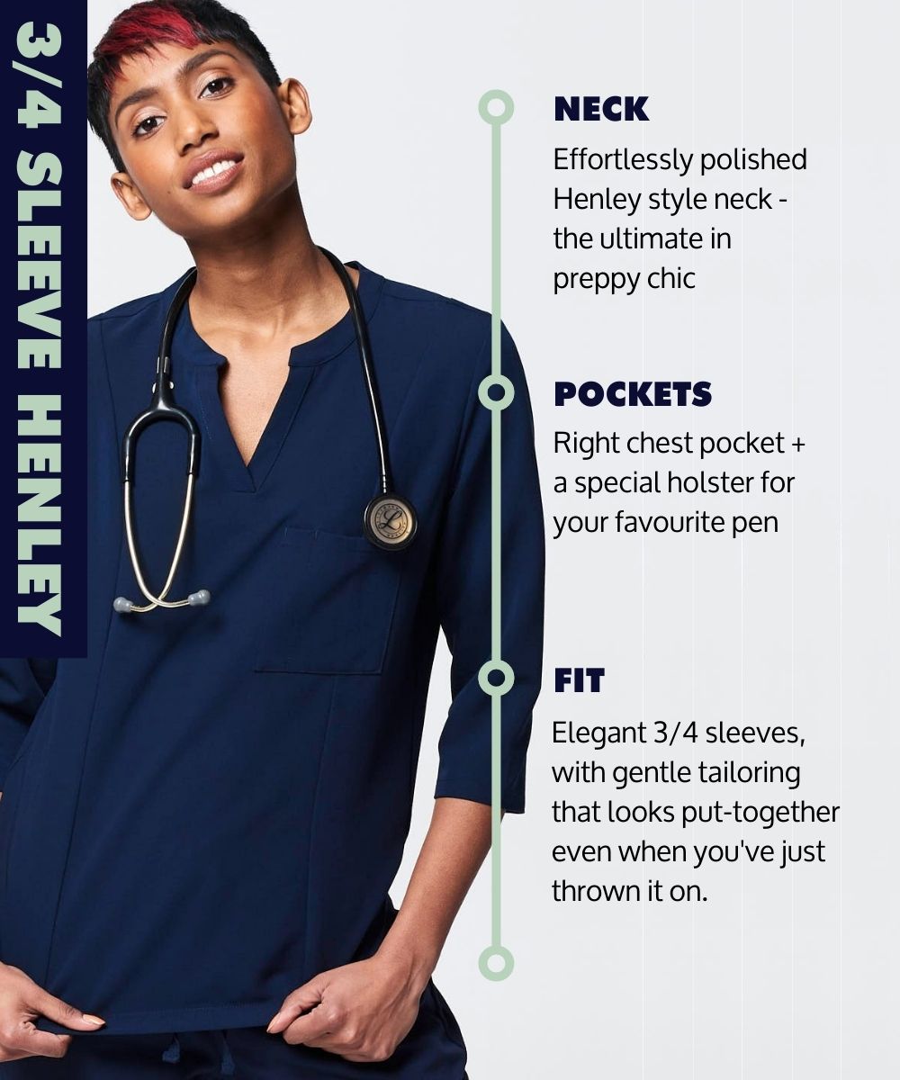 Women's 3/4 Sleeve Henley Scrub Top