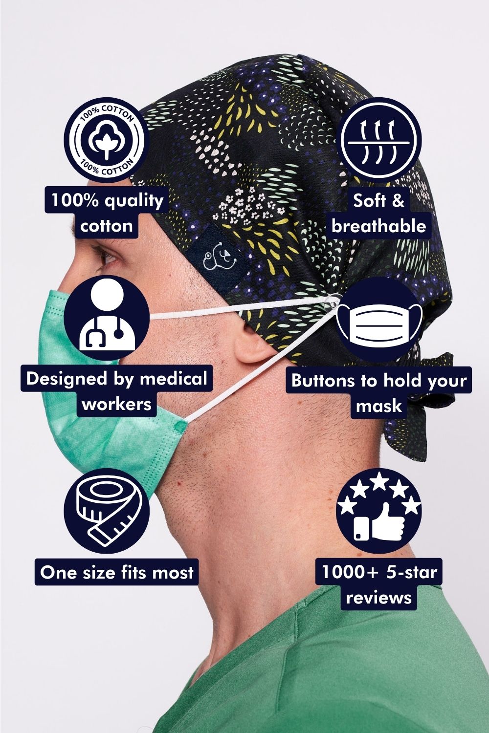 Bring the joy of nature to work with you in our 100% cotton Spring Meadow scrub cap.