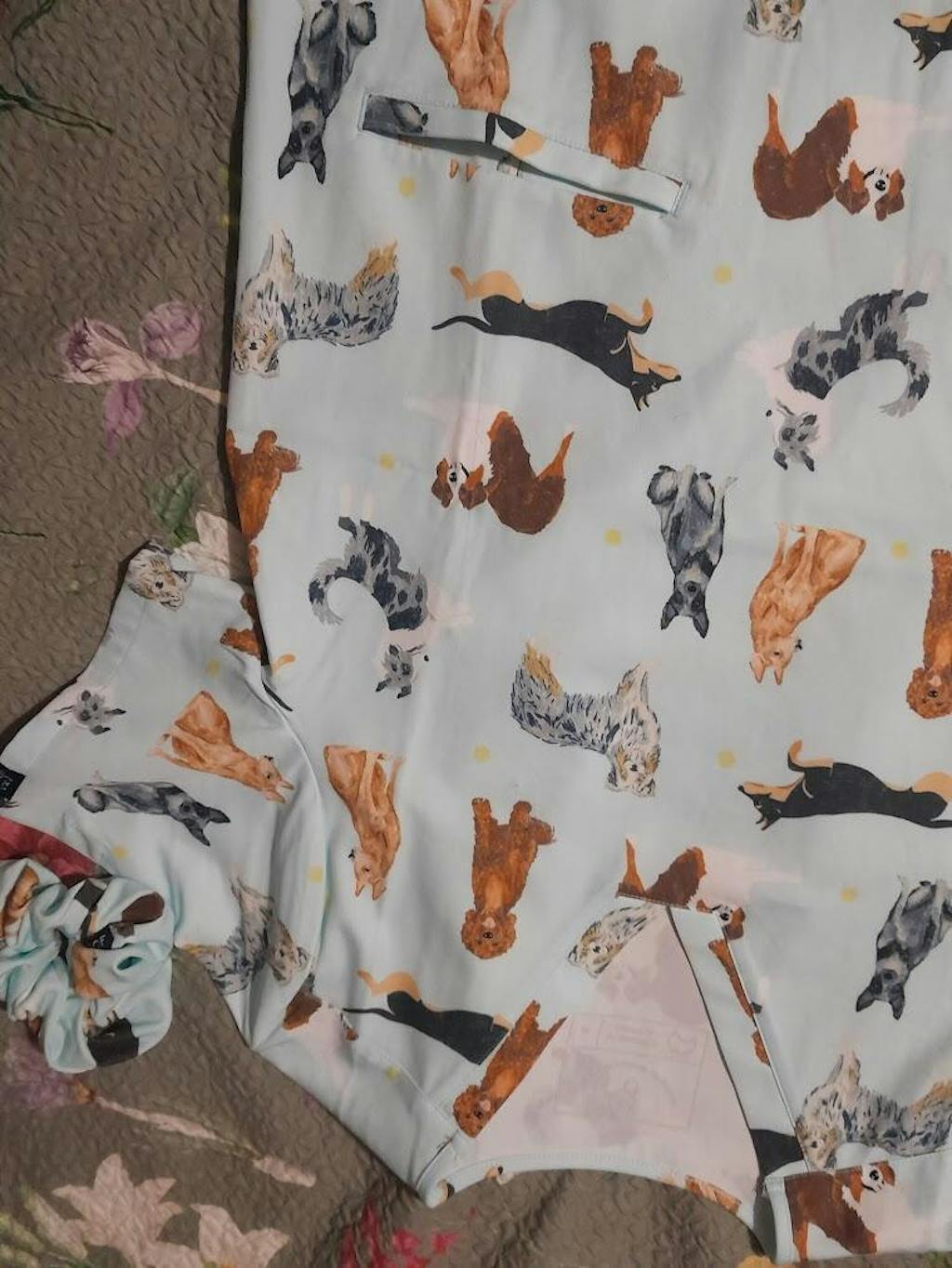 - When the scrubs are cut, we keep the offcuts and use them to make scrunchies and scrub caps