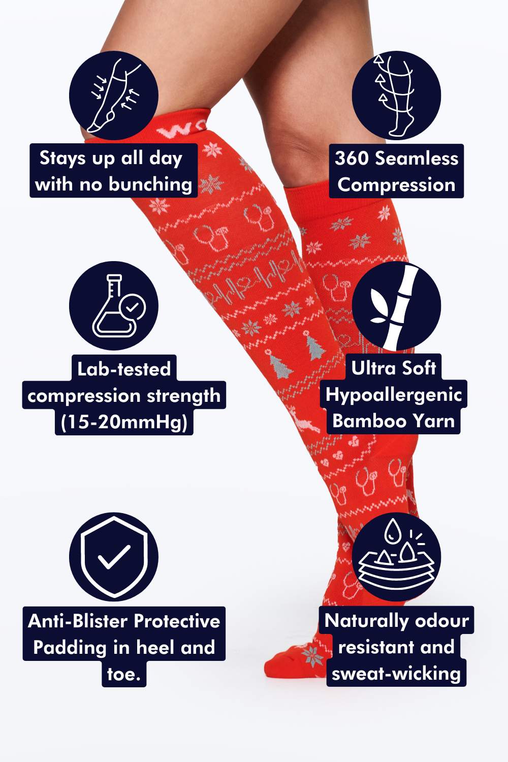 Our Christmas Sweater Compression Socks combine the comfort and luxury of bamboo fabric with 360° seamless compression.