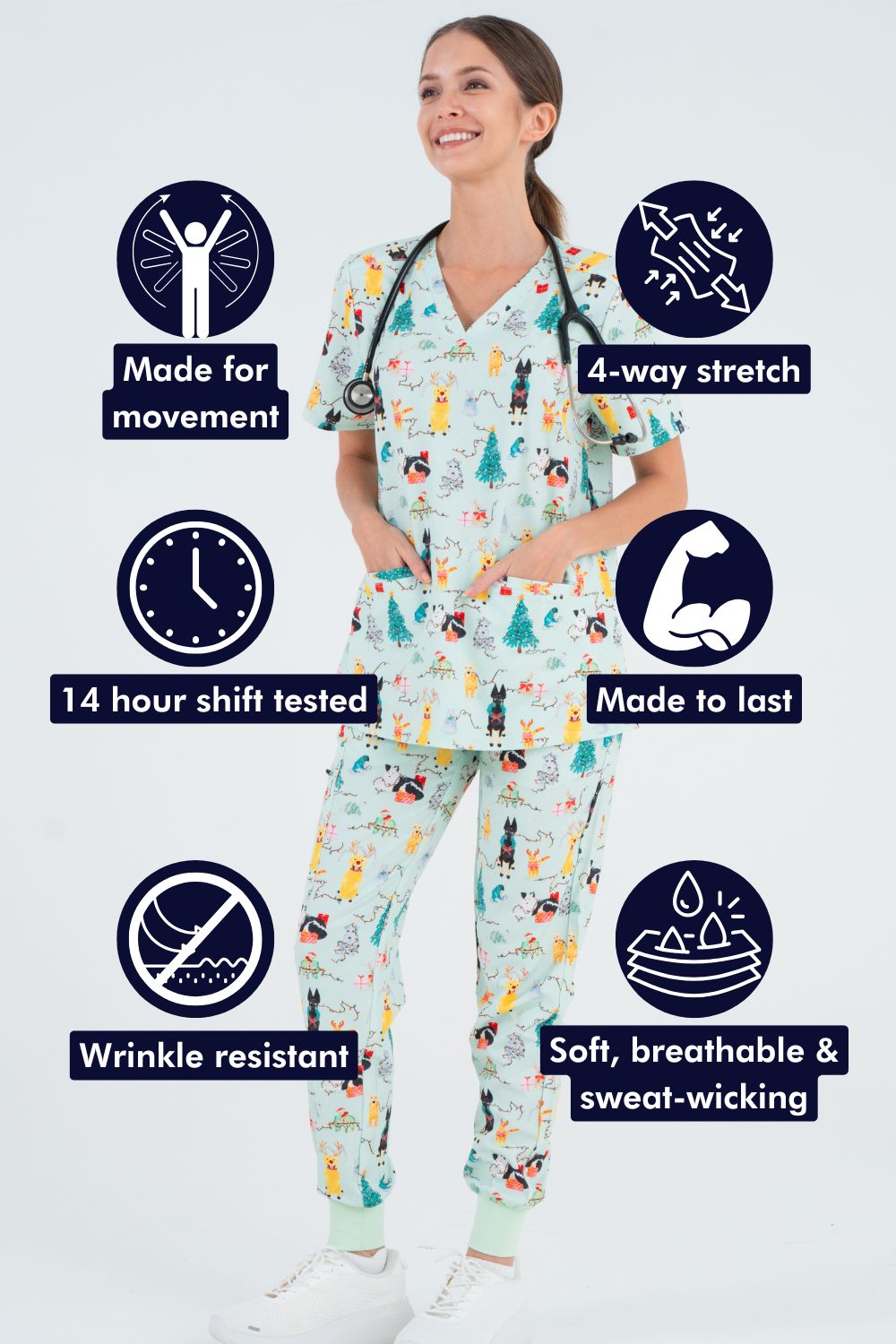 Christmas Tails Women’s 3-Pocket Scrub Top
