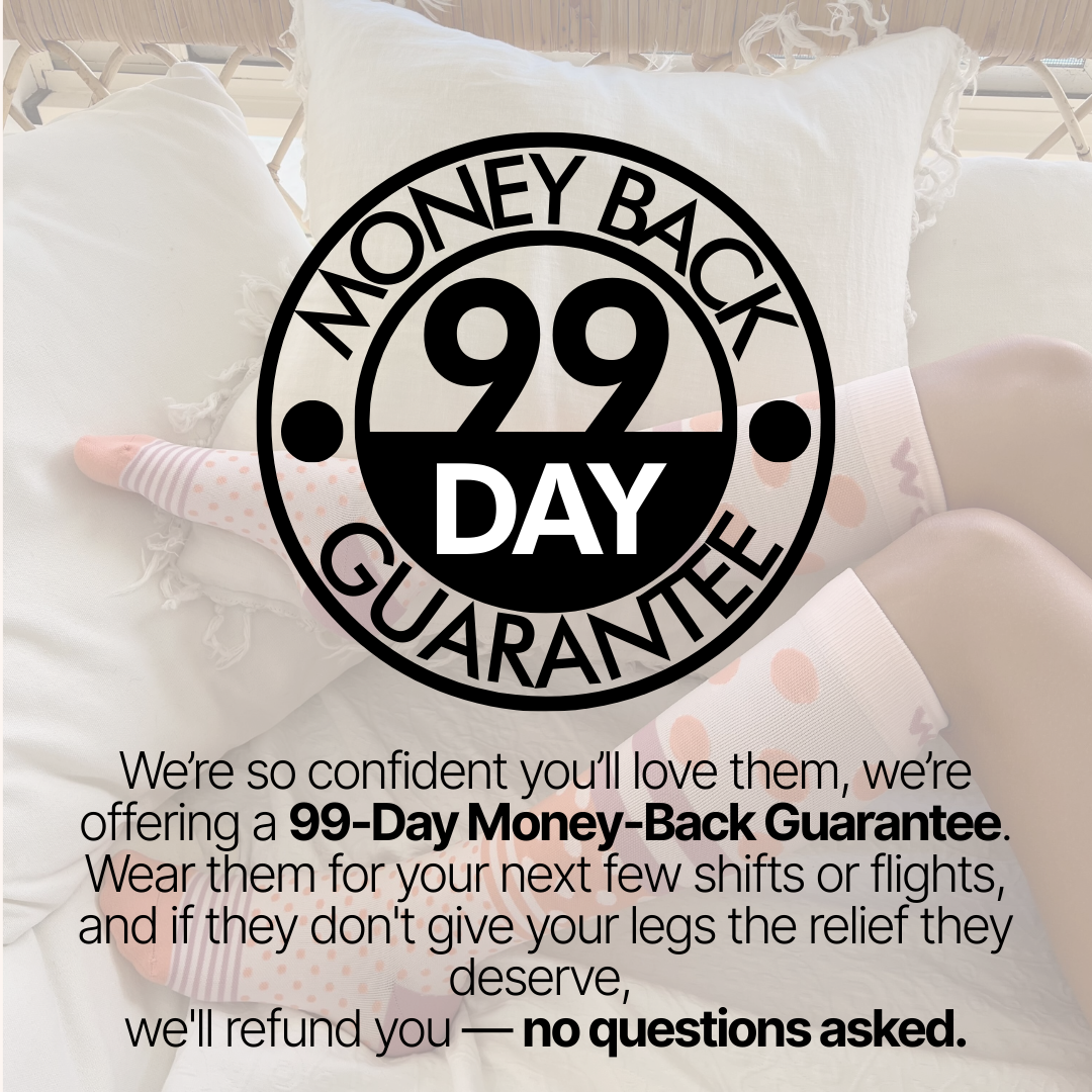 Not too tight to be uncomfortable during long shifts, but strong enough to prevent swelling and boost circulation. This is exactly what your legs need for 10+ hour days!
